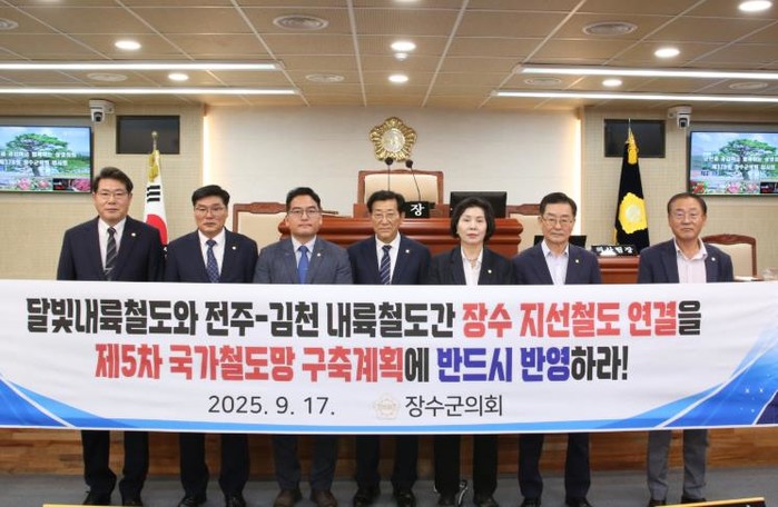 장수군의회는 제378회 임시회 제1차 본회의에서 달빛내륙철도 장수읍 경유와 전주–김천 영호남내륙철도 지선철도 신설을 촉구하는 결의안을 만장일치로 채택했다.