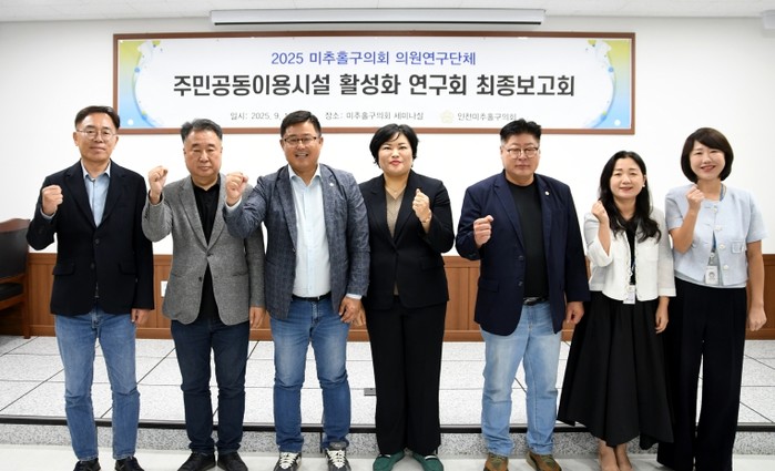 인천광역시 미추홀구의회 의원연구단체 '주민공동이용시설 활성화 연구회'(대표의원 이선용, 연구의원 이관호·정락재)는 2025년 9월 16일 미추홀구의회 세미나실에서 연구용역 최종보고회를 개최했다.