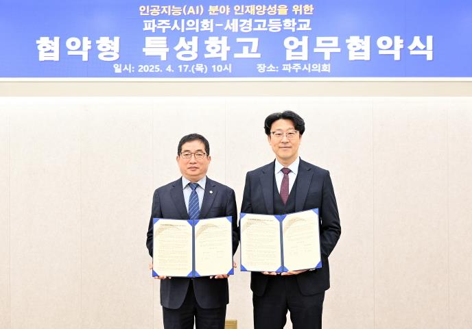 파주시의회는 4월 17일, 세경고등학교와 ‘협약형 특성화고 육성’을 위한 업무협약을 체결했다.