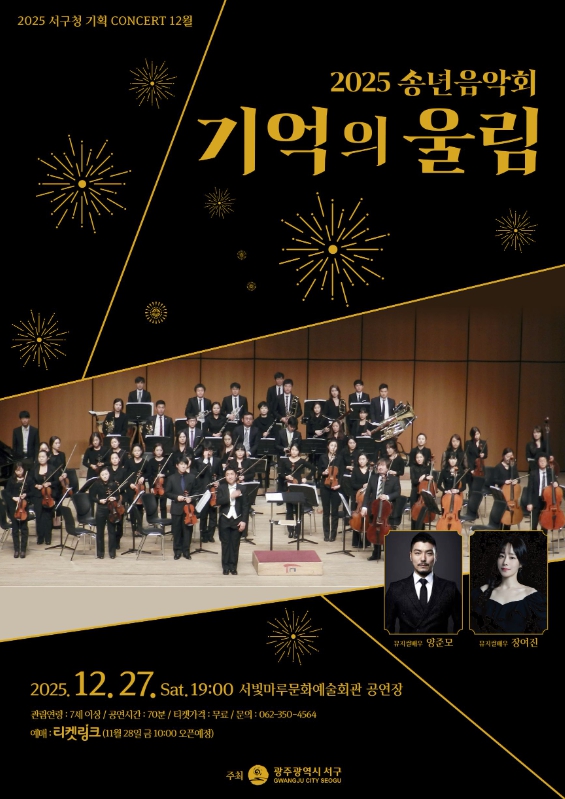 광주광역시 서구는 2025년 한 해를 마무리하며 오는 27일 오후7시 서빛마루문화예술회관에서 송년음악회 ‘기억의 울림’을 개최한다.
