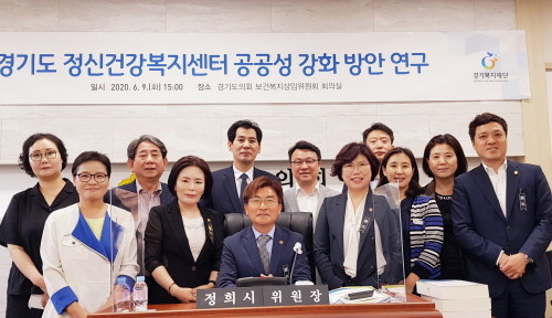 경기도의회 보건복지위원회(위원장, 정희시, 더민주, 군포 2)는 9일 보건복지위원회 회의실에서‘경기도 정신건강복지센터 공공성 강화 방안’연구용역 중간보고회를 가졌다.