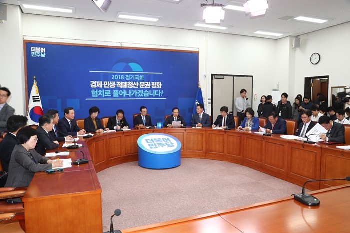 ▲15일 국회에서 열린 더불어민주당 최고위원회의 모습. <사진=곽정일 기자> |