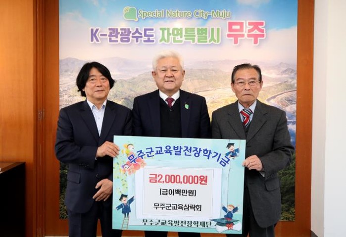 무주군교육삼락회가 지난 11일 (재)무주군교육발전장학재단에 장학금 2백만 원을 기탁했다.