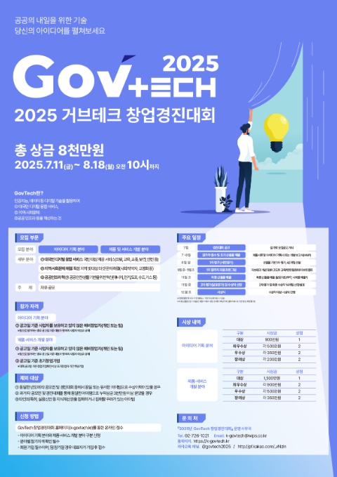 과학기술정보통신부는 2025년 정부기술(GovTech) 창업경진대회 참가자를 7월 11일부터 8월 18일까지 모집한다고 밝혔다.