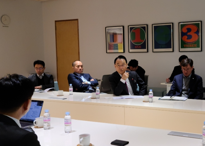 | ▲ 박상돈 천안시장이 3일 김동훈 NHN 클라우드 대표 등 관계자들과 면담을 갖고 있다. |