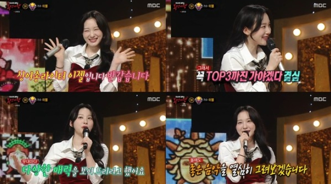 이어 이젤은 정체를 공개했다. 이젤은 JTBC '싱어게인3-무명가수전' 출연 당시 최종 3위에 올랐던 것을 언급하며 "사람들이 TOP3까지는 기억하시는 것 같아서 '내가 TOP3까지 가야겠다'고 생각했다"며 "매회 다양한 매력을 보여드리려고 노력했다. 제겐 1등 같은 3등이었다"고 회상했다.