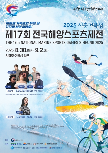국내 최대 규모 해양스포츠 종합축제인 ‘제17회 전국해양스포츠제전’이 오는 8월 30일부터 9월 2일까지 경기도 시흥시 거북섬 일원에서 열린다.