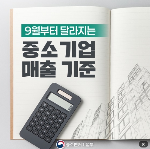 · 중소벤처기업부는 중소기업 매출액 기준 개편안을 9월 1일부터 시행.