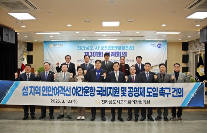 완도군의회 김양훈 의장은 3월 12일 개최된 제301회 전남의정협의회에서 "섬 지역 연안여객선 야간운항 국비지원 및 공영제 도입 촉구 건의안"을 공식 제안했다.