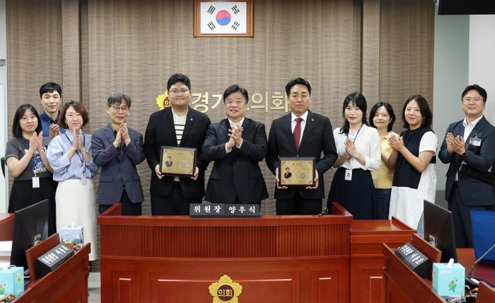▲ 경기도의회 양우식 운영위원장, 의회혁신과 선진화에 앞장선 5인에게 '혁신 공로패' 전달 |