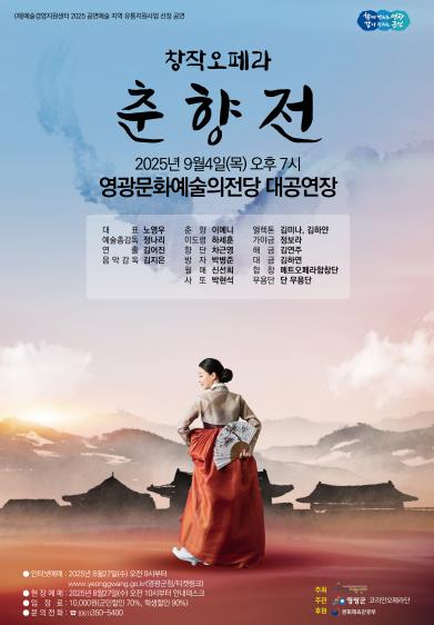 영광군은 오는 9월 4일 오후 7시에 영광문화예술의전당 대공연장에서 한국 창작 오페라의 대표작 ‘춘향전’을 공연한다.
