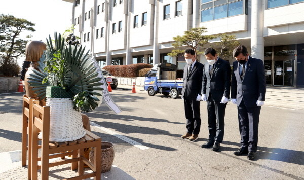 장현국 의장은 이날 오전 제348회 정례회 4차 본회의 종료 직후 의회 청사 앞 평화의 소녀상 앞에서 헌화와 묵념을 하며 성노예 피해자들의 희생을 기렸다.