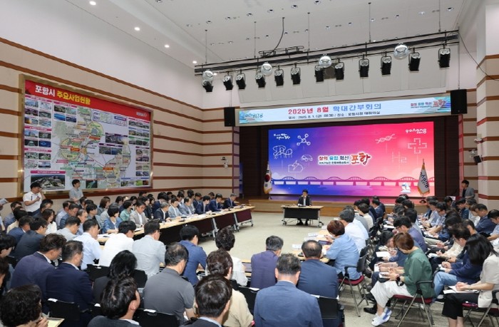 이강덕 포항시장은 1일 시청 대회의실에서 8월 확대간부회의를 주재하며 미래 세대를 위해 지역의 성장을 이끌 주요 신성장 사업 추진에 총력을 다할 것을 강조했다.