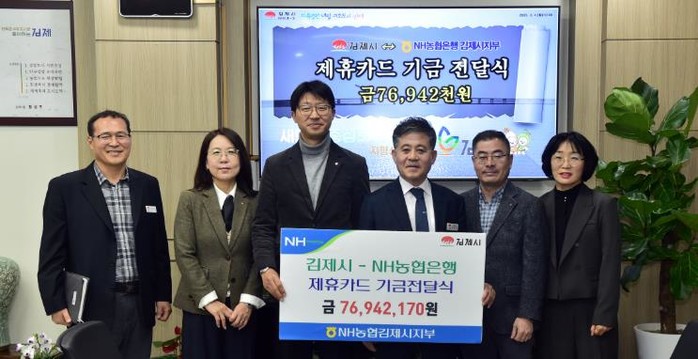 이번 시가 전달받은 기금은 7,694만원으로 양 기관 간 공동협약에 따라 지난해 1년간 김제시청 법인카드, 공무원 복지카드와 보조금 전용카드, 보탬e카드 이용실적에 따라 사용액의 0.1~1.0%를 적립한 것으로, 농협 김제시지부가 매년 시에 전달하고 있다.