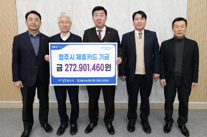 NH농협은행 청주시지부는 4일 청주시청을 찾아 지난해 제휴카드 사용에 따른 적립기금 2억7290만원을 전달했다.