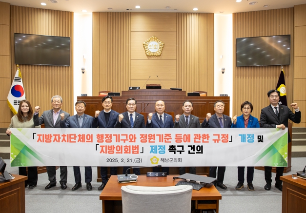 해남군의회는 전체 의원 공동발의를 통해 21일 제342회 임시회에서 “'지방자치단체의 행정기구와 정원기준 등에 관한 규정'개정 및 '지방의회법' 제정 촉구 건의안”을 채택했다.
