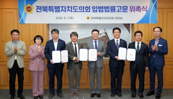 전북특별자치도의회는 1일 입법고문에 곽성훈 변호사, 법률고문에 강성명 변호사, 두세훈 변호사, 정용 변호사를 새로 위촉했다고 밝혔다.
