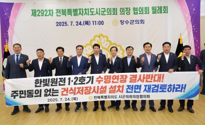 전북특별자치도시군의회의장협의회는 24일장수군의회에서 제292차 월례회를 열고, 인구소멸지역 경제 회복과 과수 농업 보호, 도민 생명과 안전 확보 등을 위한 현안을 논의했다.