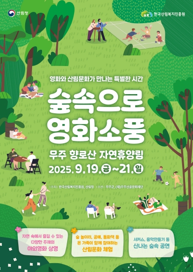 영화와 산림문화가 만나는 특별한 시간, “숲속으로 영화소풍”이 오는 19일부터 21일까지 무주 향로산 자연휴양림에서 개최된다.