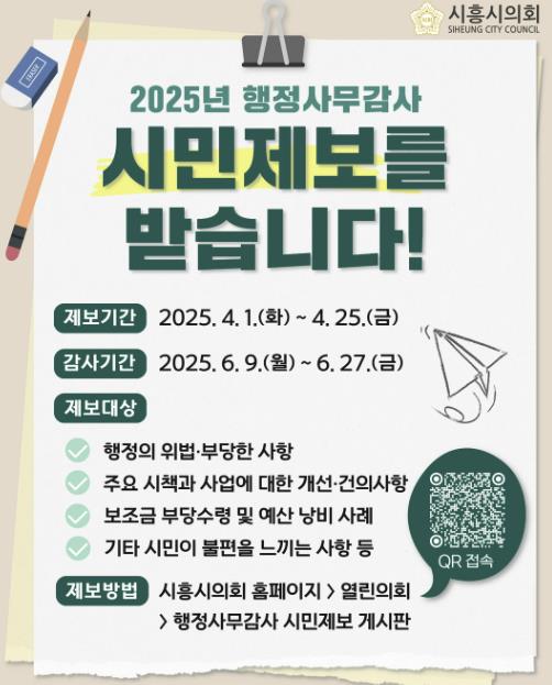 | ▲ 시흥시의회, 4월 1일부터 행정사무감사 시민제보 접수 시작 |