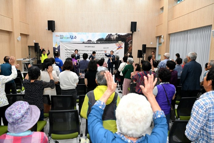 완주문화도시지원센터(센터장 조준모)가 9일 운주면 행정복지센터 2층 다목적강당에서 ‘완주로 퍼지는 문화 한 상 행사’를 열어 지역 어르신과 주민 200여 명이 함께하며 뜻깊은 시간을 보냈다.