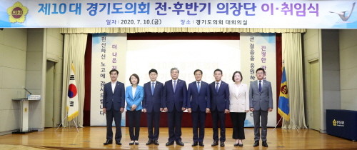 경기도의회는 10일 오전 10시 의회 1층 대회의실에서 ‘제10대 경기도의회 의장단 전·후반기 이·취임식’을 실시하고, 후반기 의회 일정에 본격 돌입했다.