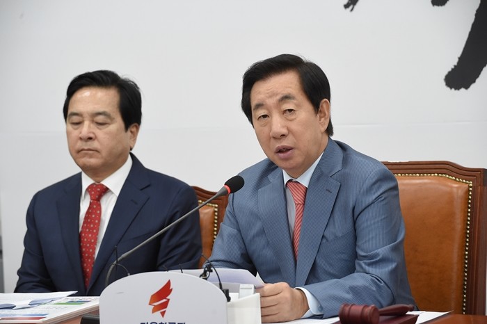 ▲김성태 자유한국당 원내대표가 15일 국회에서 열린 비상대책위원회의에서 발언하고 있는 모습. <사진=곽정일 기자> |