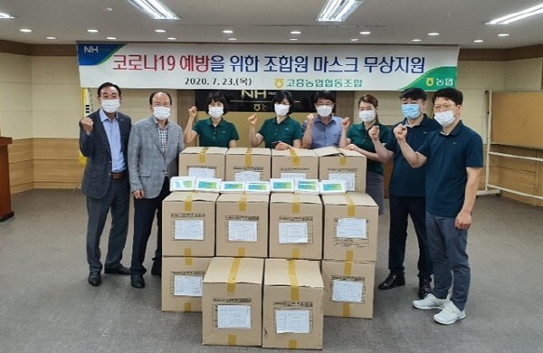 고흥농협(조합장 이광수)는 코로나19 감염병 예방을 위해 마스크 착용 일상화와 사회적거리두기 등에 동참하고 조합원들의 코로나19로부터의 감염예방을 위해 마스크를 배부 했다.