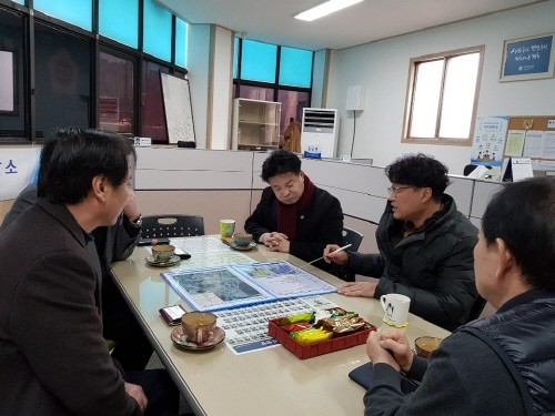 경기도의회 연천상담소 유상호 도의원(더불어민주당 . 연천)은 지난 10일 경기도시공사 연천BIX개발사업소장에게 은통산업단지 조성사업 업무보고를 받고 기업유치를 위한 간담회를 개최하였다.
