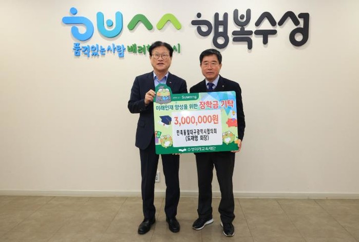 도재영 회장은 “작은 정성이지만 수성구 학생들이 훌륭한 인재로 성장하는 데 도움이 되길 바란다”며 “앞으로도 정기적인 장학금 후원을 통해 미래 인재 양성에 보탬이 되겠다”고 말했다.