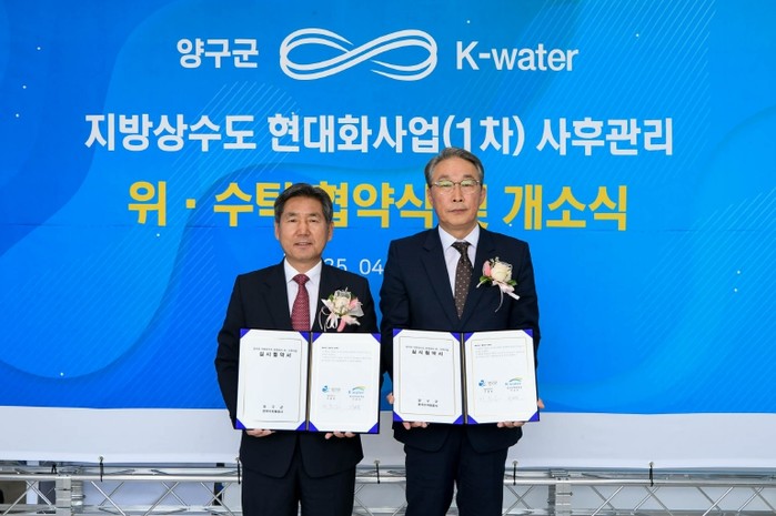 양구군은 25일 오전, 수자원공사 한강유역본부 북부사업센터에서 K-water 한강유역본부와 지방상수도 운영관리 위·수탁 협약을 체결했다.