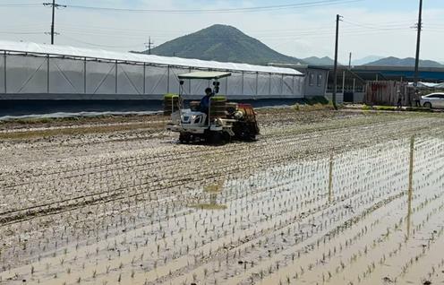 경산시 자인면 울옥리 신호철 농가, 4월 28일 첫 모내기 실시