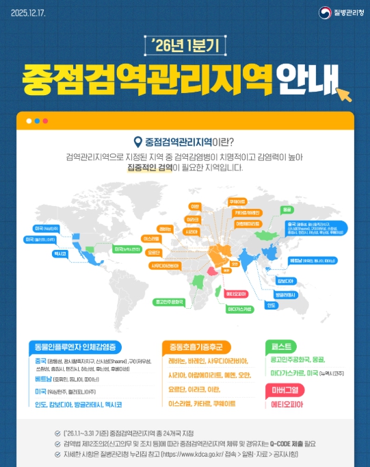 | ▲ 2026년 1분기 중점검역관리지역 안내 |