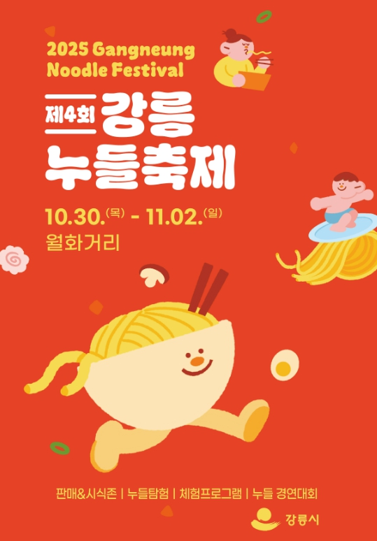 강릉시는 오는 10월 30일 목요일부터 11월 2일 일요일까지 4일간, 강릉의 대표 면 요리를 즐기고 다채로운 볼거리와 즐길 거리를 통해 강릉의 다양한 매력을 만끽할 수 있는‘2025 제4회 강릉 누들 축제’를 개최한다.