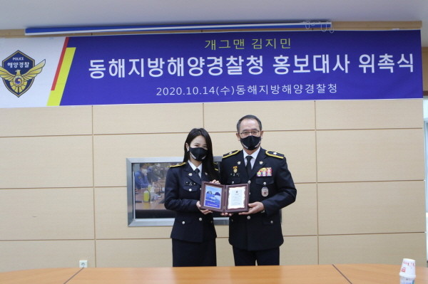 김영모 동해지방해양경찰청장은 “우리청 홍보대사에 적임자라고 판단하여 명예홍보대사를 의뢰하였는데 흔쾌히 수락해줘서 감사하며, 김지민 님의 선한 영향력으로 국민들 모두가 깨끗하고 안전한 바다 만들기에 동참해 주기를 희망한다”고 말했다.