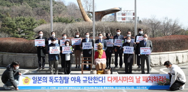 [프레스뉴스] 김대일 기자= 경기도의회 독도수호 특별위원회, 경기도의회 독도사랑·국토사랑회는 2월22일 경기도의회 평화의 소녀상 앞에서 일본의 ‘다케시마의 날’ 폐지를 강력히 촉구하는 성명서를 발표하였다.