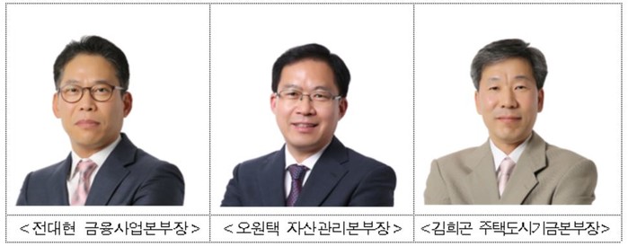 신임 본부장 3인은 HUG에서 그동안의 업무경험과 전문성을 바탕으로 4일부터 공식적으로 업무를 수행해 나갈 예정이다.