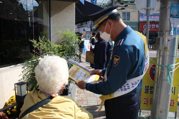 최근 9월 한달 사이에 피해자를 직접 만나 현금을 건네받는 대면편취형 보이스피싱 범죄가 급증한 가운데 10월 14일 장날을 이용하여 생활안전과와 읍내파출소 합동으로 고흥읍재래시장 주변에서 캠페인을 실시하였다.
