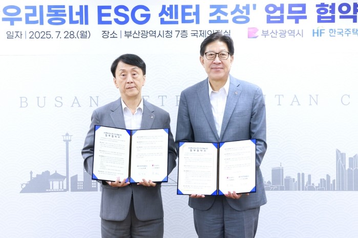부산시(시장 박형준)는 오늘(28일) 오전 11시 시청 국제의전실에서 한국주택금융공사와 '우리동네 사회가치경영(ESG) 센터' 조성 등을 위한 업무협약 및 기부금 전달식을 개최한다고 밝혔다.
