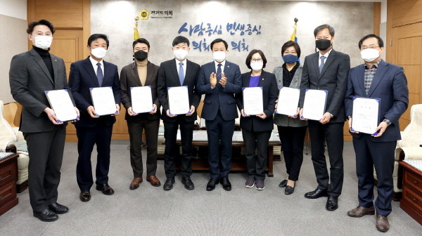 [프레스뉴스] 김대일 기자= 장현국 경기도의회 의장(더민주, 수원7)은 23일 의장 접견실에서 ‘2020 회계연도 결산검사위원’ 10명에게 위촉장을 수여했다.