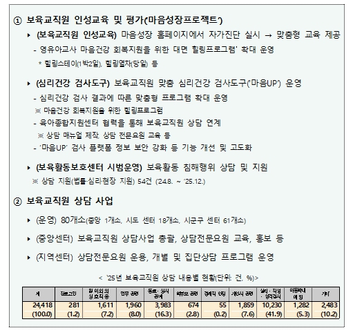 | ▲ 보육교직원 마음건강 지원 현황( |