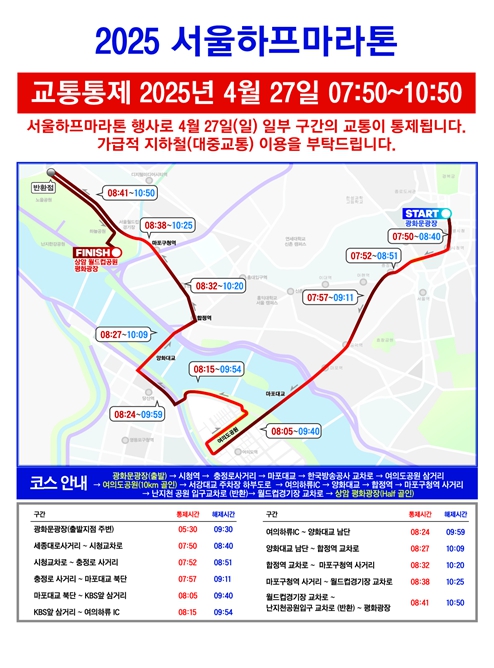 | ▲ ‘2025 서울하프마라톤대회’ 교통통제 안내문 |