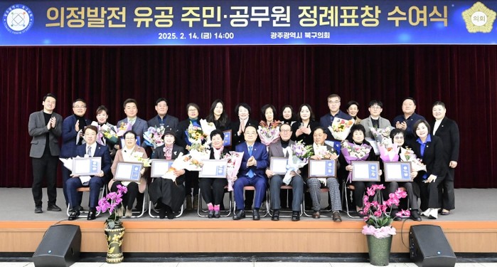 광주 북구의회는 지난 20일, 2024년도 4분기 정례표창 수여식을 개최하여 의정발전, 사회봉사, 주민자치 3개 분야에 공이 있는 주민과 공무원에게 표창패를 수여했다고 밝혔다.