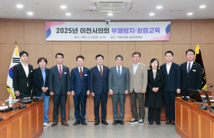 이천시의회가 바람직한 청렴문화를 조성하고 공직 윤리의식 강화를 위한 실질적 노력을 이어가고 있다. 시의회는 4월 29일, 상임위원회실에서 시의원과 의회사무과 소속 공무원 전원이 참석한 가운데 부패방지 및 청렴교육을 실시했다.