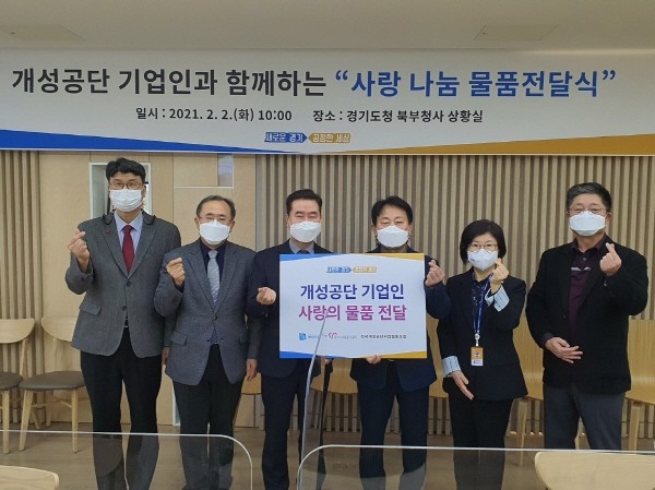 경기도는 2일 오전 경기도청 북부청사 상황실에서 ‘개성공단 기업인과 취약계층이 함께하는 사랑 나눔 물품 전달식’을 진행했다고 밝혔다.