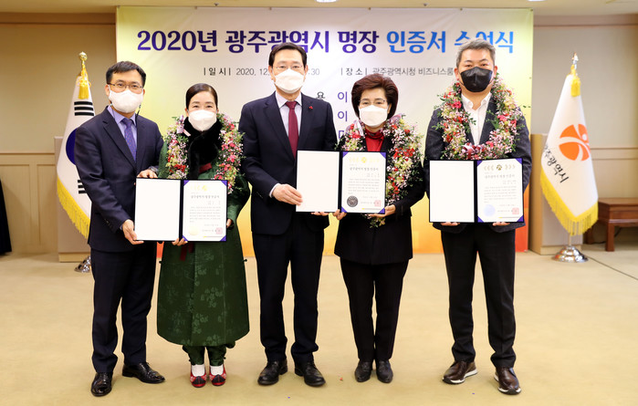 광주광역시는 23일 시청에서 광주 명장 3명에게 ‘2020년 광주광역시 명장’ 인증서를 수여했다.