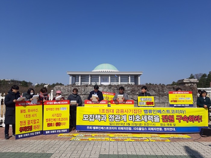 밸류인베스트코리아 피해자연합은 22일 오전 IDS홀딩스 피해자연합, 정의연대와 함께 밸류인베스트코리아 진상규명 촉구 기자회견을 열었다고 밝혔다.