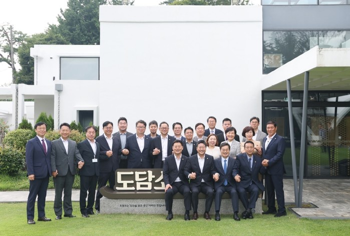 ▲ 13일 오전 도담소에서 김동연 경기도지사, 김진경 경기도의회 의장, 최종현 경기도의회 더불어민주당 대표의원, 백현종 경기도의회 국민의힘 대표의원, 각 당 대표단 및 주요 내빈 등이 기념촬영을 하고 있다. |