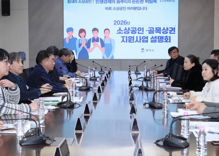 평택시는 지난 2일 시청 도시정책회의실에서 관내 소상공인의 경영 안정을 도모하고 골목상권 활성화 방안을 모색하기 위한 ‘2026년 소상공인 및 골목상권 지원사업 설명회’를 개최했다.