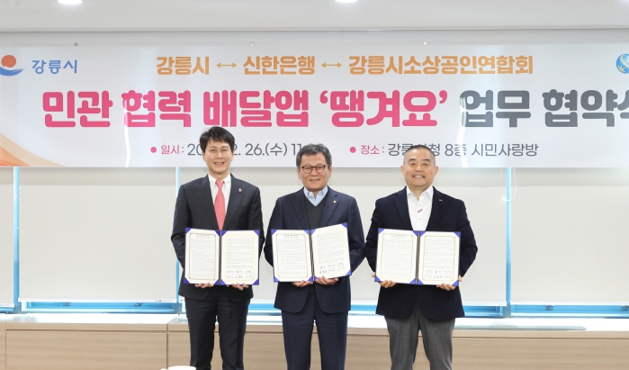 이에 따라 강릉시는 26일 오전 11시 신한은행 및 강릉시소상공인연합회와 민관 협력 배달앱 업무협약식을 개최한다고 밝혔다.